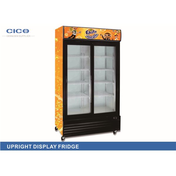 Transparent Upright Display Refrigerator Two Vertical Lights No Vibration Images |